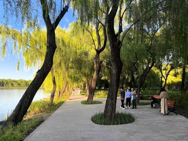 多处区域补植了适应本地气候的乡土地被植物,湖畔增种了低矮灌木,高大乔木也进行了细致的修剪,植被层次更加丰富,生态性与观赏性同步提升。昆明湖南岸新铺设的园路、预留的观景平台以及沿途增设的休息座椅,为游客提供了更多便利与休憩选择。游客们纷纷表示,“颐和园不仅景色优美,设施也越来越人性化,逛起来更舒服、更便利了”。